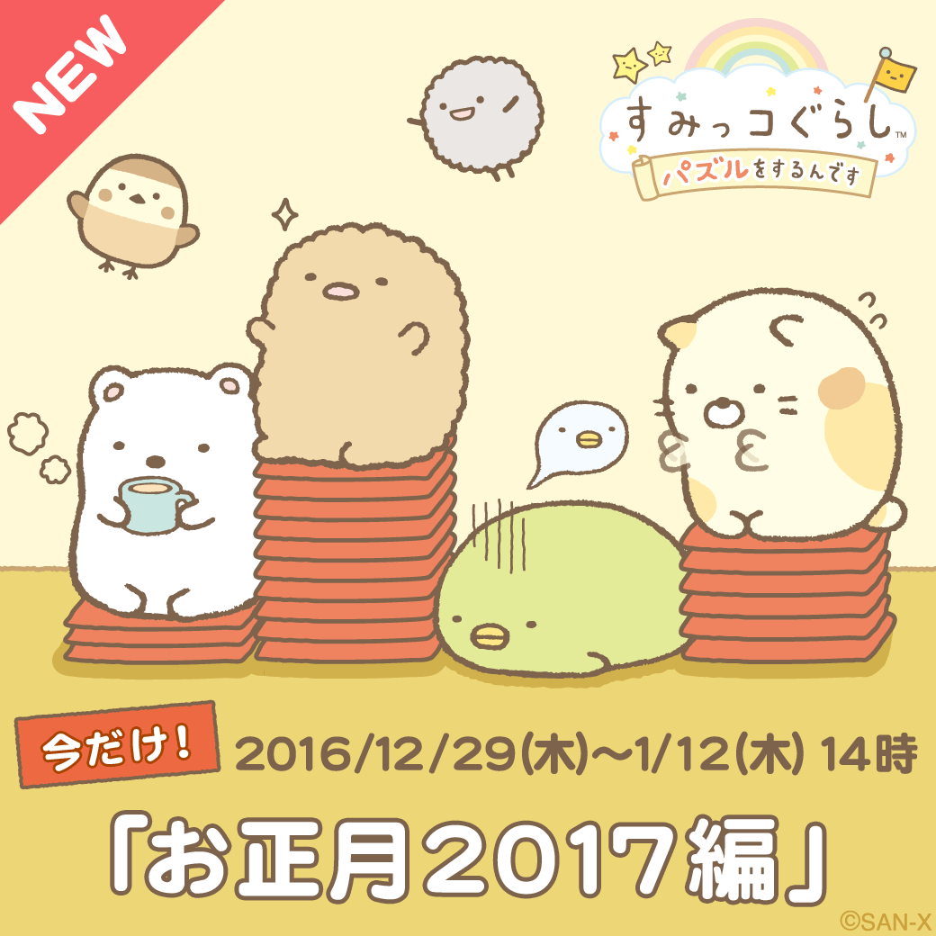 スマートフォンゲーム「すみっコぐらし ~パズルをするんです~」では期間限定マップ「お正月2017編」が登場します。