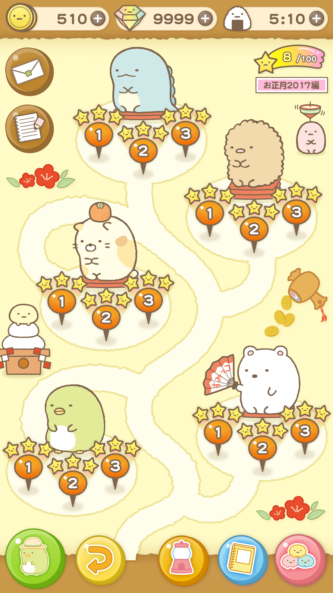 スマートフォンゲーム「すみっコぐらし ~パズルをするんです~」では期間限定マップ「お正月2017編」が登場します。