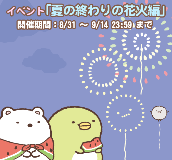 スマートフォンゲーム「すみっコぐらし ~パズルをするんです~」では 期間限定マップ「夏の終わりの花火編」が登場します。