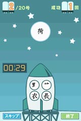 月面に書かれた漢字の部首を、ロケット上の4つの選択肢の中から選んでタッチします。正解すると、ロケットは無事に月に向かって発射されます。